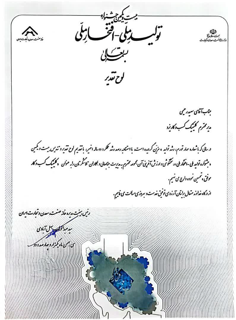 تجلیل از کلینیک کسب و کار یزد در بیست و یکمین جشنواره تولید ملی - افتخار ملی