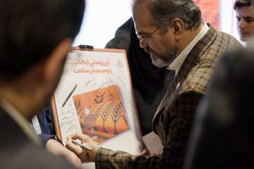 همزمان با برگزاری دومین روز از دهمین نمایشگاه دستاوردهای پزوهش و فناوری استان یزد، فاطمی استاندار یزد با حضور در پاویون شرکت شهرکهای صنعتی، از کتاب «زیلوی میبد فرش سلامت» رونمایی کرد.