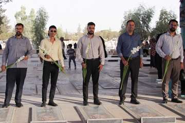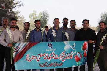 جمعی از پرسنل شرکت شهرکهای صنعتی استان یزد به همراه اقشار محتلف مردم، با حضور در گلزار خلدبرین یزد ضمن تجدید میثاق با آرمان های امام (ره) و شهدای هشت سال دفاع مقدس، قبور این شهدای والا مقام را گلباران و عطرافشانی کردند.