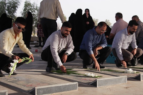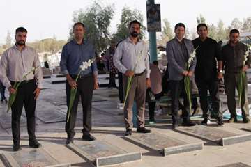 در این مراسم معنوی با غبارروبی و عطرافشانی مزار شهدا و قرائت فاتحه، ضمن ادای احترام به روح بلند و ملکوتی شهدا، بار دیگر با آرمانهای والای شهدای گرانقدر انقلاب اسلامی تجدید میثاق کردند.